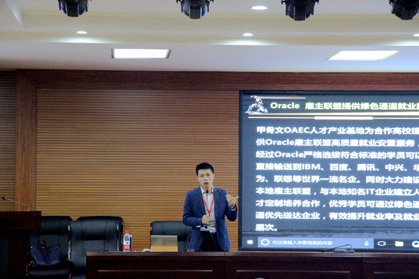 本次讲座邀请到了甲骨文(Oracle)青岛人才产业基地负责人耿颖工程师为参与的学生讲解指导,耿颖老师用个人的工作和社会经历为学生打开了实习就业的方向,用他所从事行业的知识向同学们展示了互联网经济发展带来的各类就业机遇,让学生对于未来互联网经济发展给我自己带来的就业机会和创业机会有了深入了解。