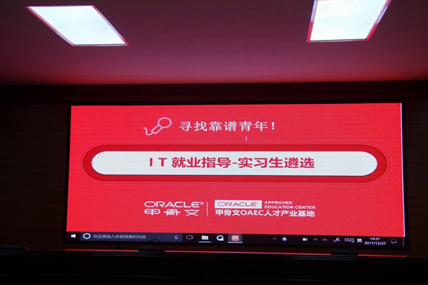 本次讲座邀请到了甲骨文(Oracle)青岛人才产业基地负责人耿颖工程师为参与的学生讲解指导,耿颖老师用个人的工作和社会经历为学生打开了实习就业的方向,用他所从事行业的知识向同学们展示了互联网经济发展带来的各类就业机遇,让学生对于未来互联网经济发展给我自己带来的就业机会和创业机会有了深入了解。